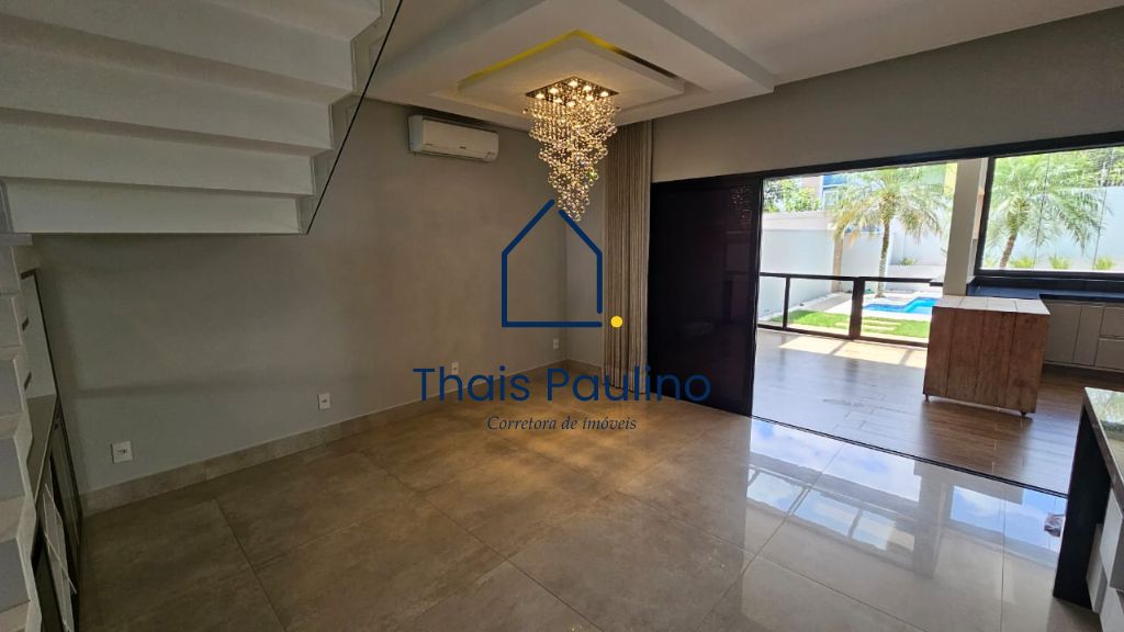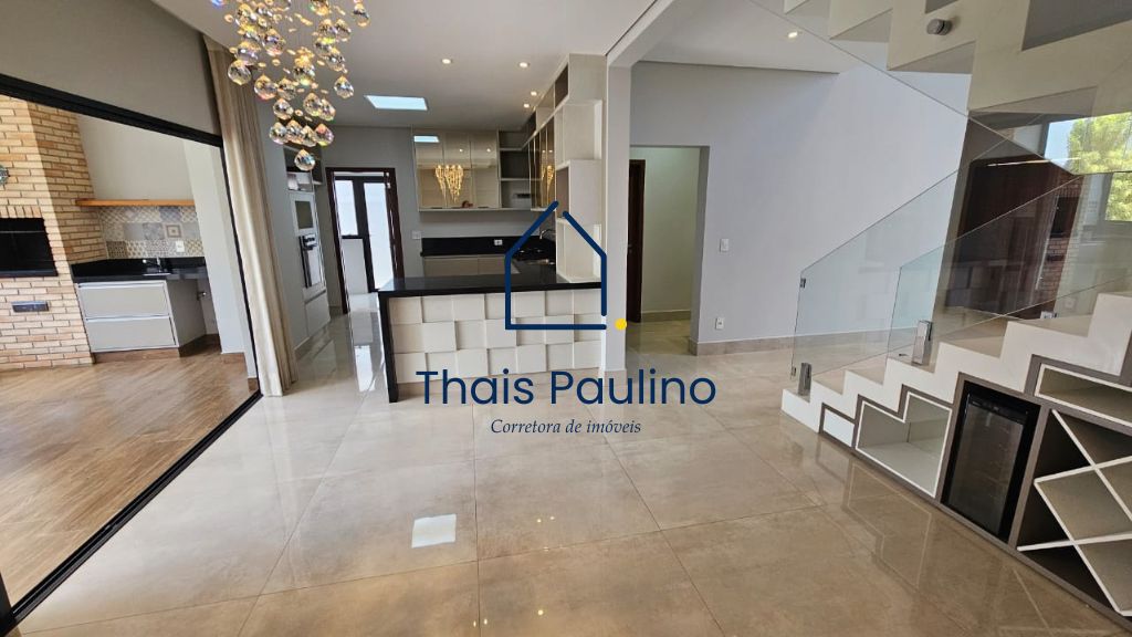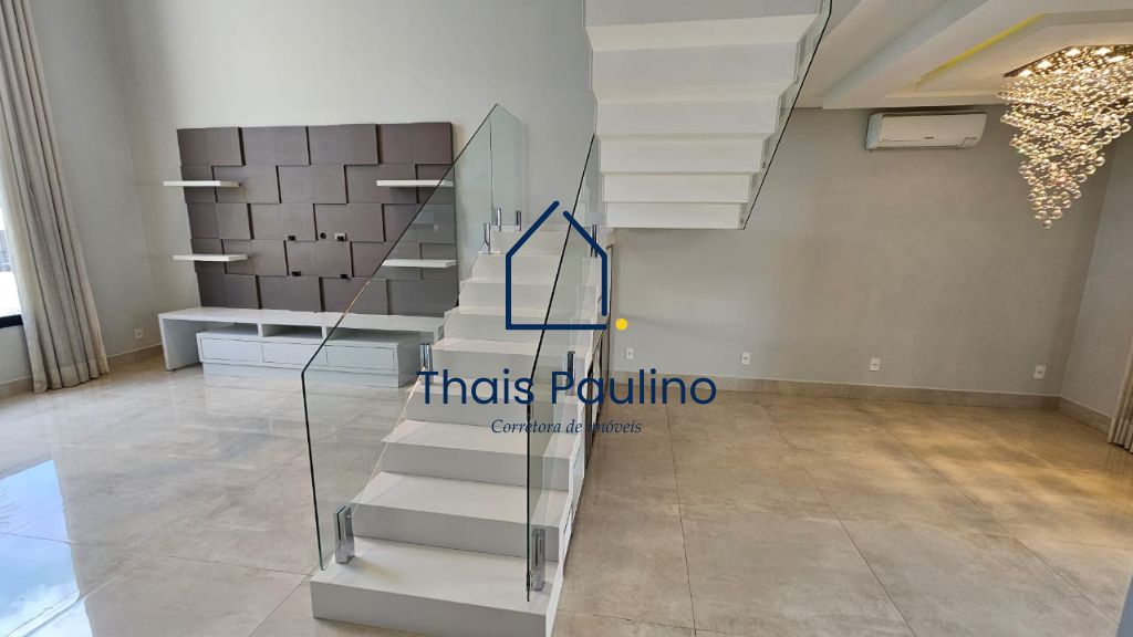 – Sala ampla com pé direito duplo, móveis planejados e lustre de cristal,